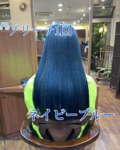 ブリーチオンカラーでネイビーブルーに仕上げました💪🤩