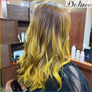 “金髪の黄色”ではなく“あえて黄色くしている感”を出すために、毛先のブリーチ部分に原色イエローをしっかり入れ込みました💫